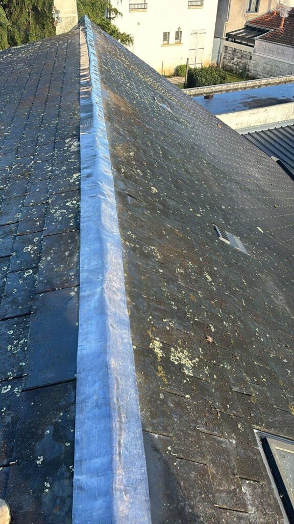 Nous avons réalisé la reprise d’étanchéité d’une toiture, accompagnée de la rénovation complète du faîtage, afin d’assurer une protection durable contre les infiltrations et les intempéries. Cette intervention a permis de renforcer la solidité de la couverture tout en améliorant la longévité de l’ensemble de la toiture. Un travail soigné, pensé pour garantir confort et tranquillité au quotidien.