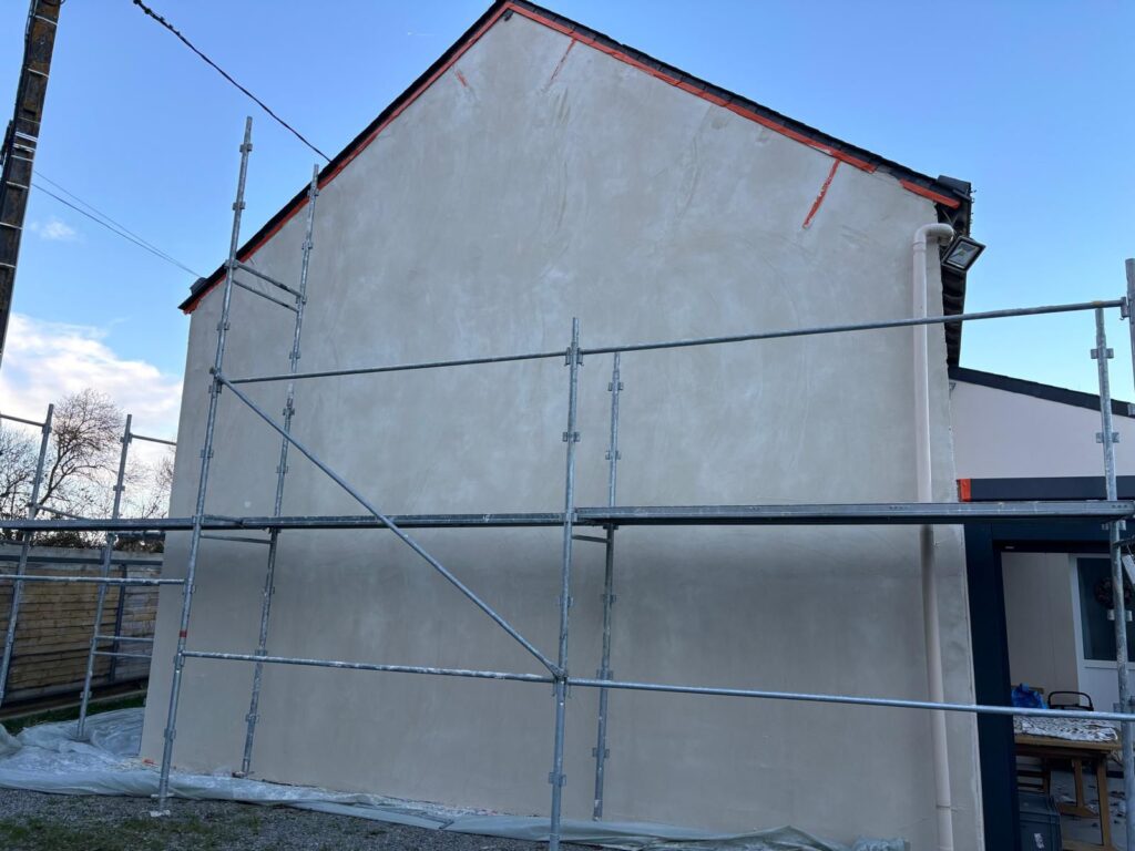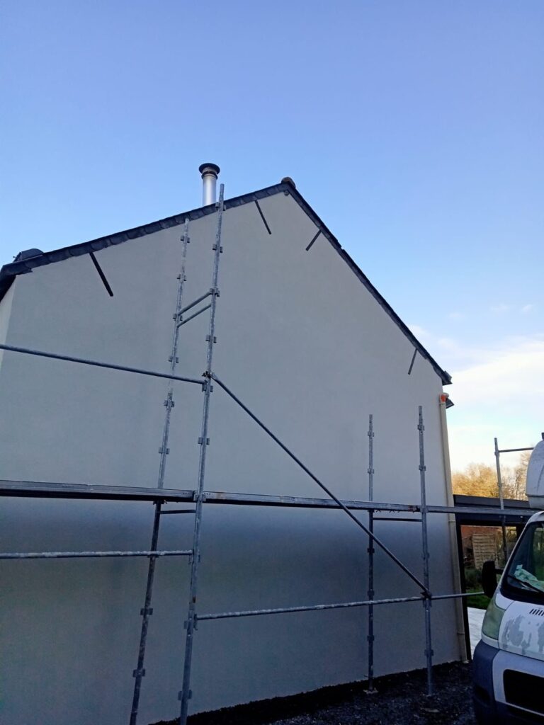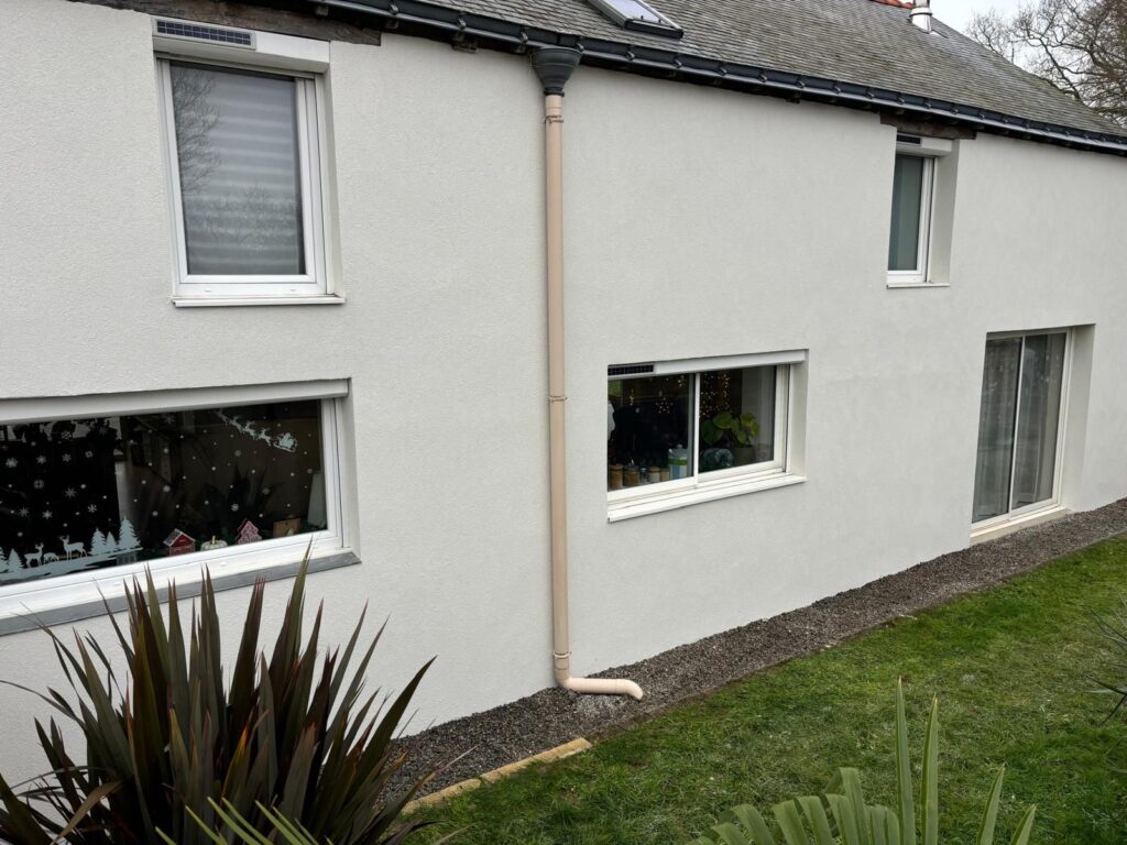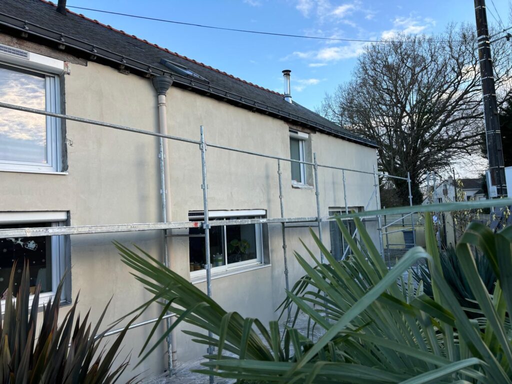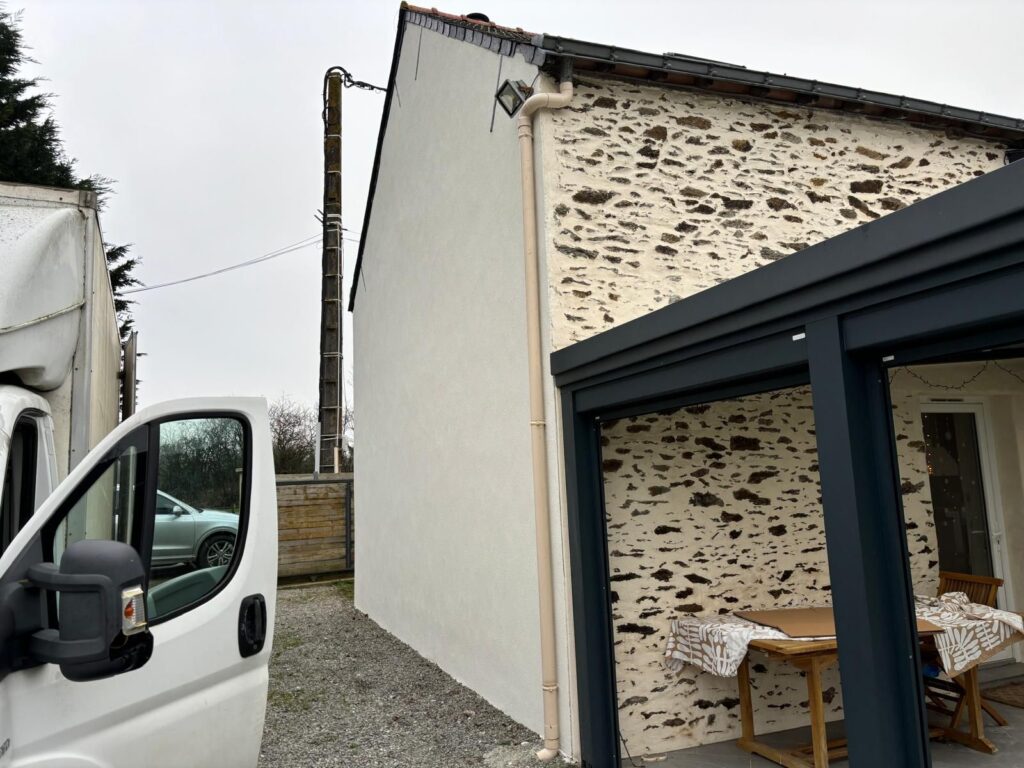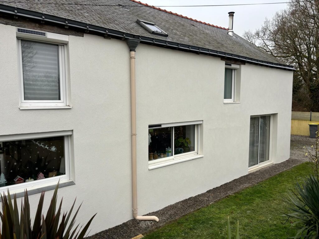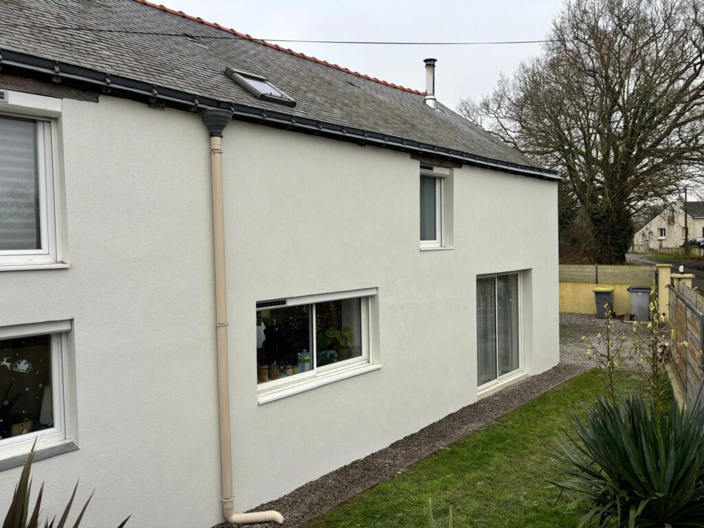 Nous avons réalisé le ravalement de façade en enduit RPE sur une maison située à Nantes, redonnant tout son éclat à l’habitation. L’enduit RPE, apprécié pour sa résistance et son aspect esthétique, offre une protection durable contre les intempéries tout en modernisant l’aspect extérieur. Grâce à un travail soigné et à des finitions précises, la façade retrouve une allure harmonieuse qui met en valeur l’ensemble de la propriété.