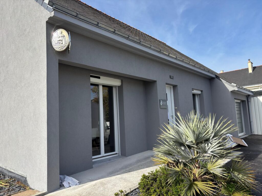 Nous avons récemment mené à bien la rénovation complète d’une étude notariale située à Nort-sur-Erdre, avec une rénovation de façade RPE soignées. L’objectif était de redonner du cachet au bâtiment tout en assurant une protection durable contre les intempéries. Grâce à un travail précis et des finitions impeccables, la façade retrouve aujourd’hui son éclat, offrant une image professionnelle et accueillante à ce lieu dédié au service juridique.