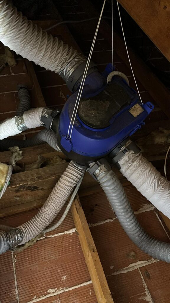Nous avons réalisé le remplacement d’une ventilation mécanique simple flux par l’installation d’une VMC double flux dans des combles à Vertou. Ce type d’équipement permet d’améliorer nettement la qualité de l’air intérieur tout en limitant les pertes de chaleur, ce qui en fait une solution idéale pour optimiser le confort thermique de l’habitat. L’intervention a été menée avec soin afin de garantir une intégration discrète dans les combles et un fonctionnement performant au quotidien. Grâce à cette installation, le logement bénéficie désormais d’un air plus sain et d’une meilleure efficacité énergétique.